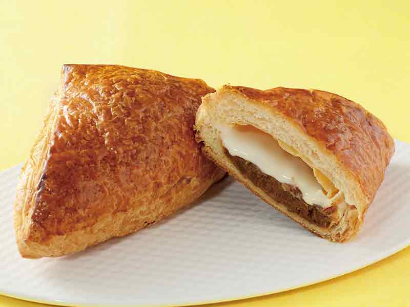 とろ~りとしたチーズソースと旨みのあるミートフィリングを包んだという三角型のミートパイ。