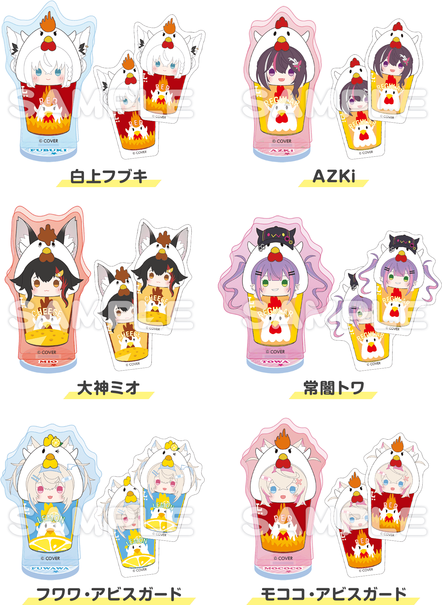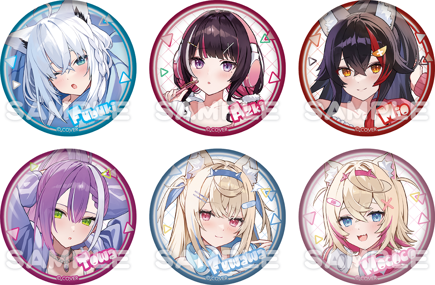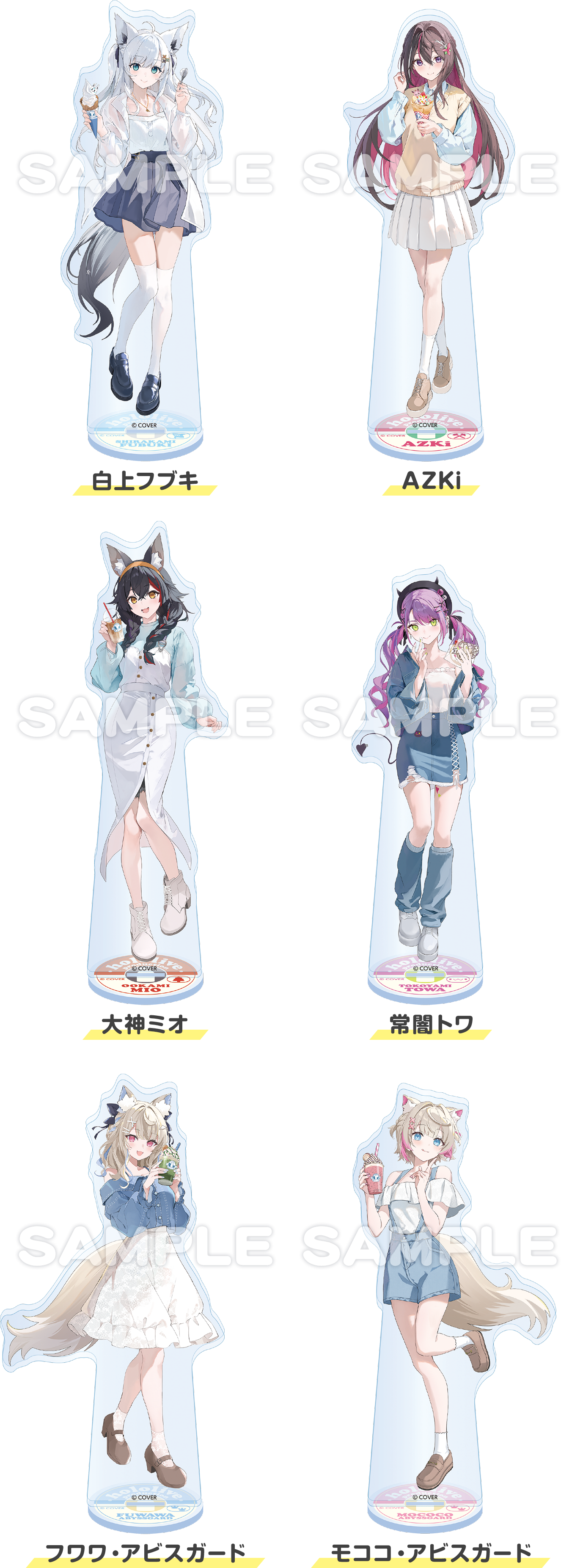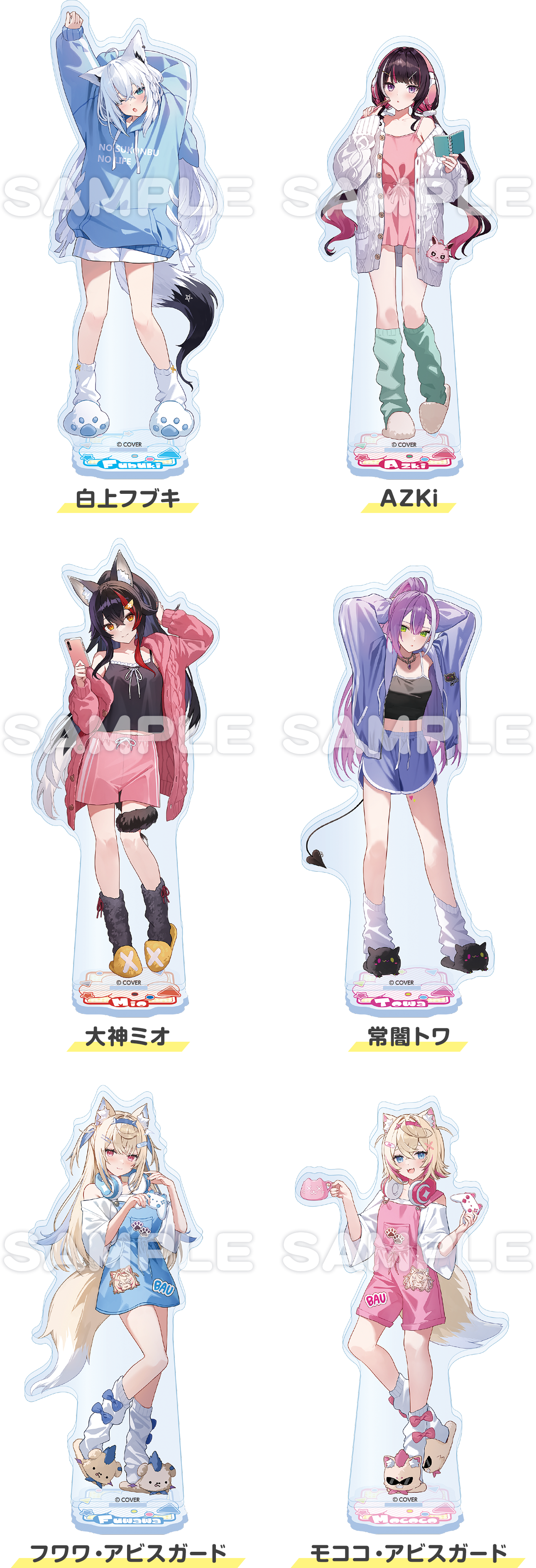- ラインアップ:【全6種】(白上フブキさん、AZKiさん、大神ミオさん、常闇トワさん、フワワ・アビスガードさん、モココ・アビスガードさん)