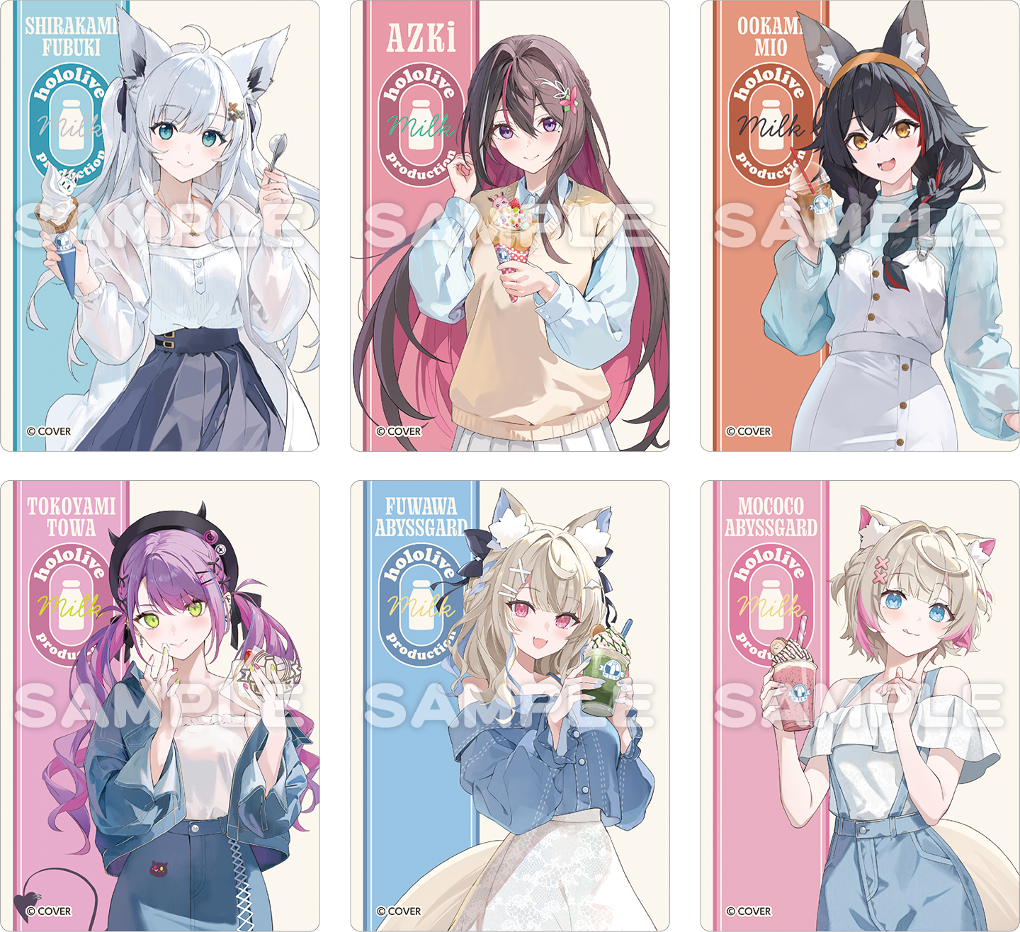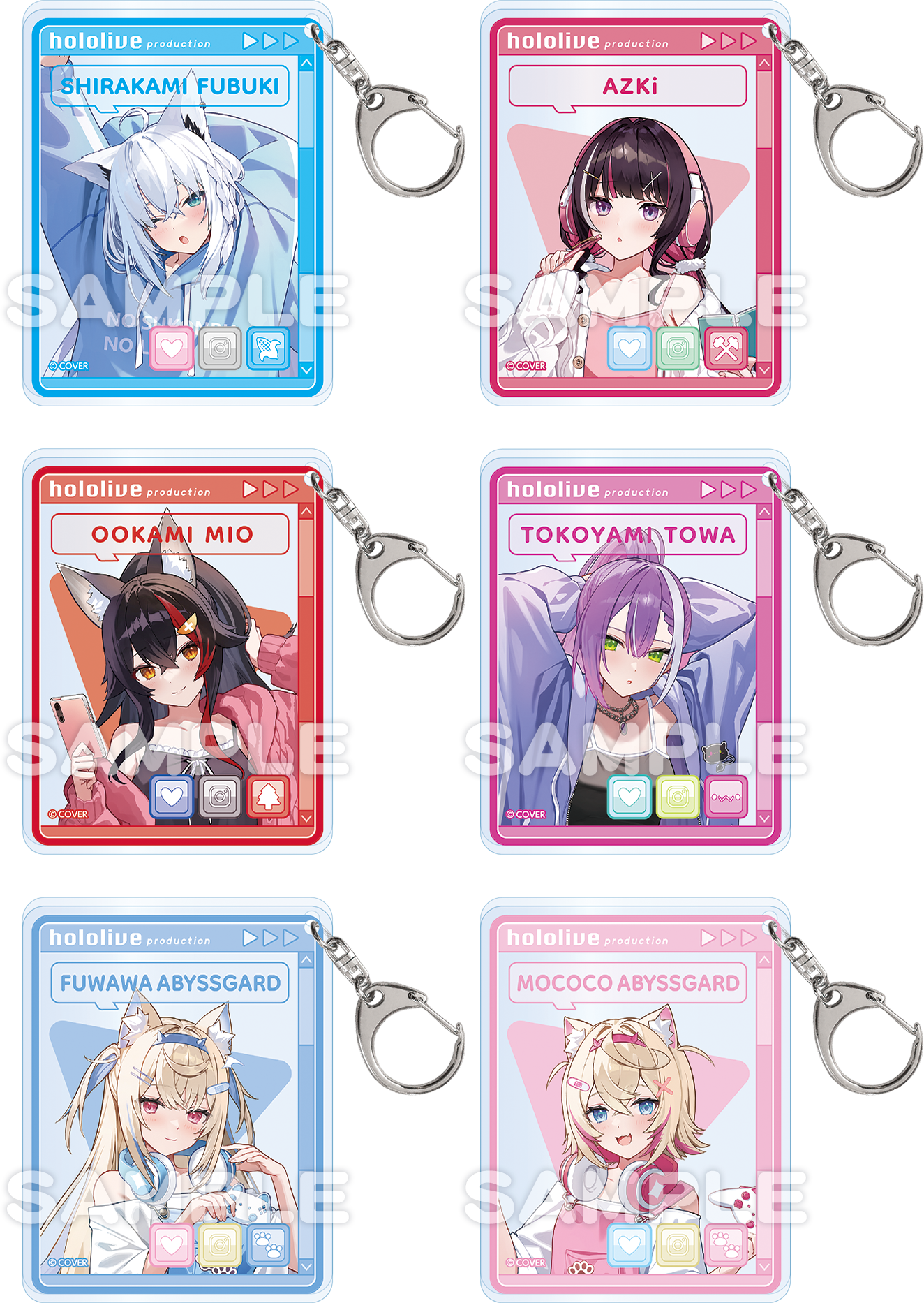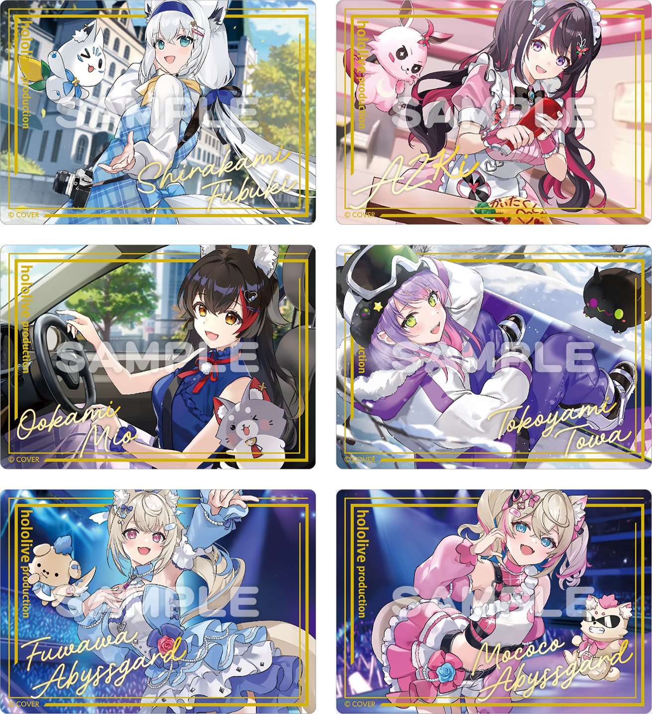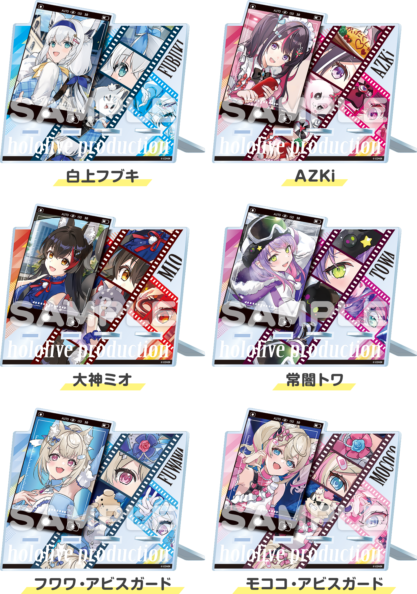 - ラインアップ:【全6種】(白上フブキさん、AZKiさん、大神ミオさん、常闇トワさん、フワワ・アビスガードさん、モココ・アビスガードさん)