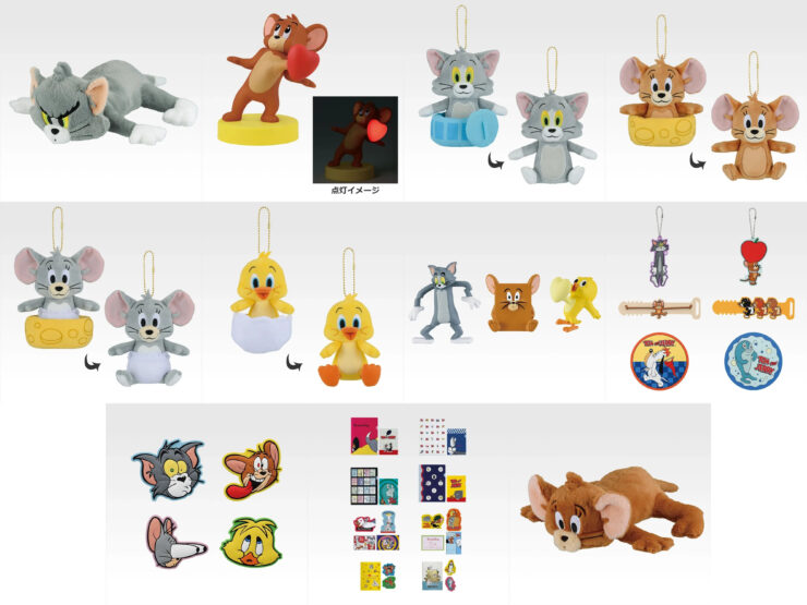 「トム くったりぬいぐるみ」や「ジェリー ハートビートライト」などトムとジェリーの可愛いグッズが当たる一番くじ