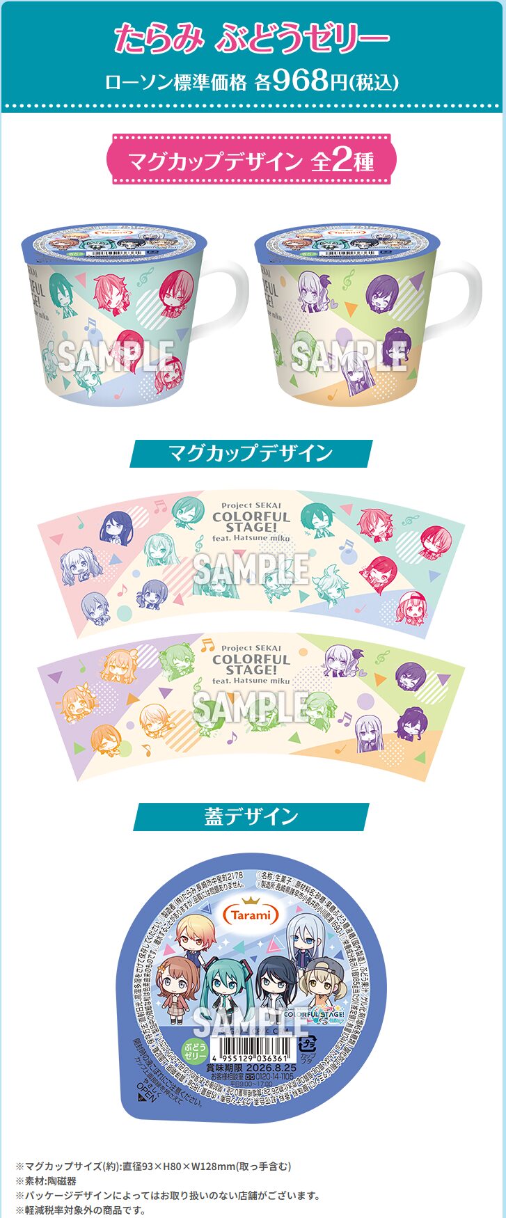 その一環で、全国のローソンで「プロジェクトセカイ カラフルステージ! feat.初音ミク たらみぶどうゼリー」が2026年3月24日(火)から販売が開始されます。デザインは2種類で、価格は各968円(税込)。