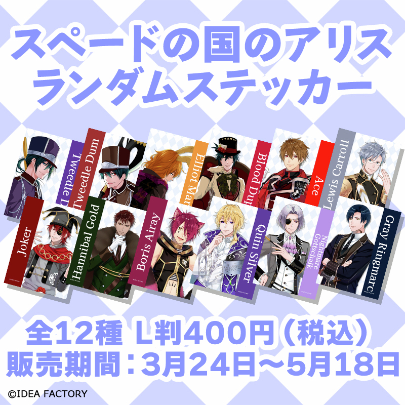 ローソンで『スペードの国のアリス』ランダムブロマイド / ステッカーが2026年3月24日発売、オトメイトスタイル描き下ろしイラストが全12種のブロマイド / ステッカーになって登場