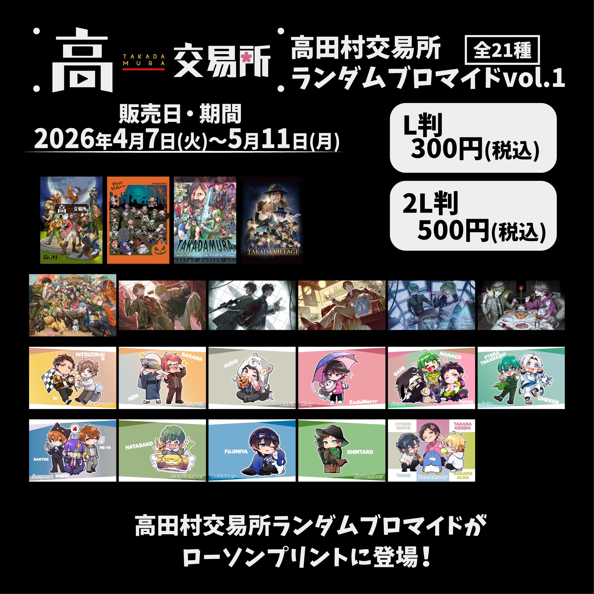 ローソンプリントで「高田村交易所 ランダムブロマイド vol.1」が2026年4月7日(火)から販売が開始されています。販売期間は5月11日(月)まで。