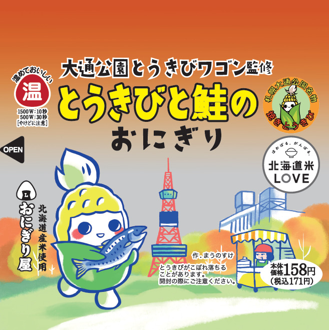 ちなみに、とうきびと鮭おにぎりのパッケージについては、とうきびワゴンのPRキャラクター「きびっち」と「札幌テレビ塔」がデザインされているそうです。