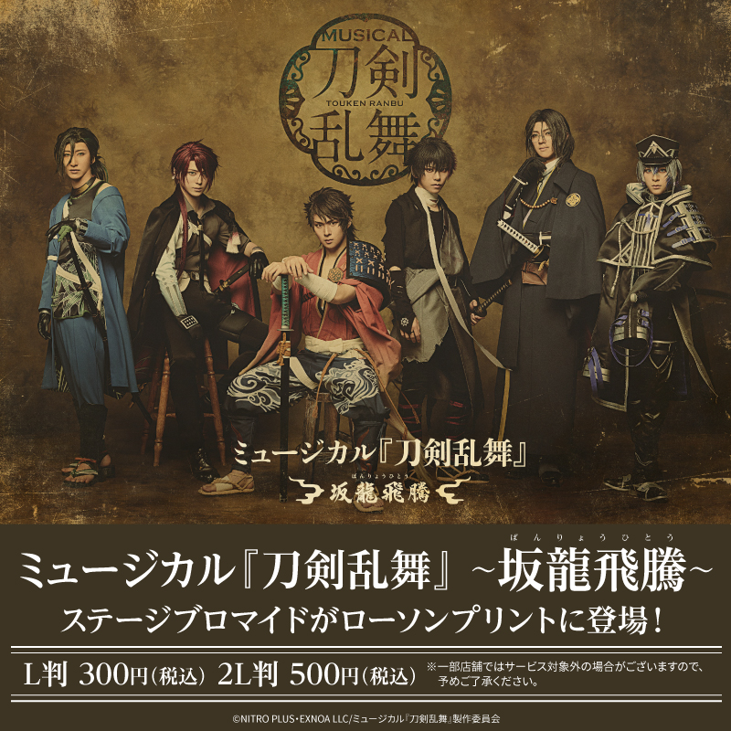 明日9月23日(火・祝)より、ローソン店内マルチコピー機サービス「ローソンプリント」にて、ミュージカル『刀剣乱舞』 祝玖寿 乱舞音曲祭のステージブロマイドを販売いたします!