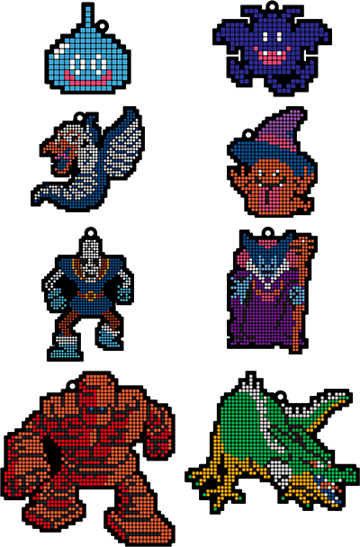 さらに、ドラクエシリーズのキャラクターやモンスター達がデザインされた「F賞 マルチクロス」、スライムやりゅうおう達がドットデザインで登場する「G賞 ラバーストラップ」も用意されています。