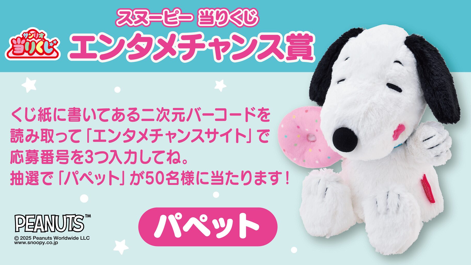 このほか、くじ券の半券に記載されているQRコードから応募することで、スヌーピーの「パペット」が抽選で50名に当たるエンタメチャンス賞も実施予定とのこと。