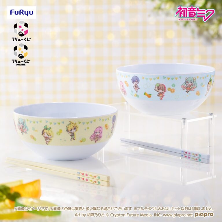 このほか、初音ミクたちの可愛いイラストがデザインされた「C賞 マルチボウル&おはしセット」、初音ミク / 鏡音リン / 鏡音レンの「D賞 ぬいぐるみマスコット」もラインアップされています。