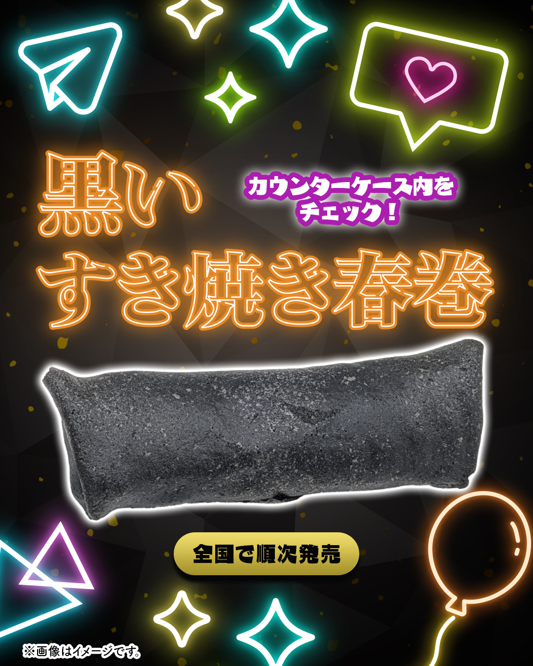 牛肉や長ねぎなどの具材を、甘辛いすき焼き風に仕上げた「黒いすきやき春巻」登場✨