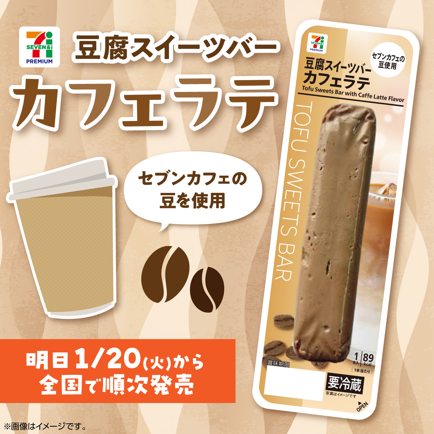 「セブンプレミアム 豆腐スイーツバー カフェラテ」はまずは首都圏や北海道、東海、中国などで1月20日(火)から販売が開始され、その後、全国で順次展開されるそうです。