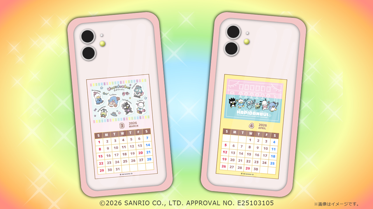 はぴだんぶいメンバーがデザインされたスマホカレンダーの3月~4月版が登場