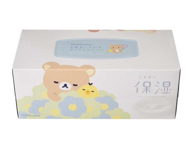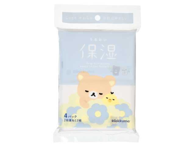 リラックマ達がデザインされた可愛いティシュ。写真は「うるおい保湿 ポケットティシュ12組 4個」