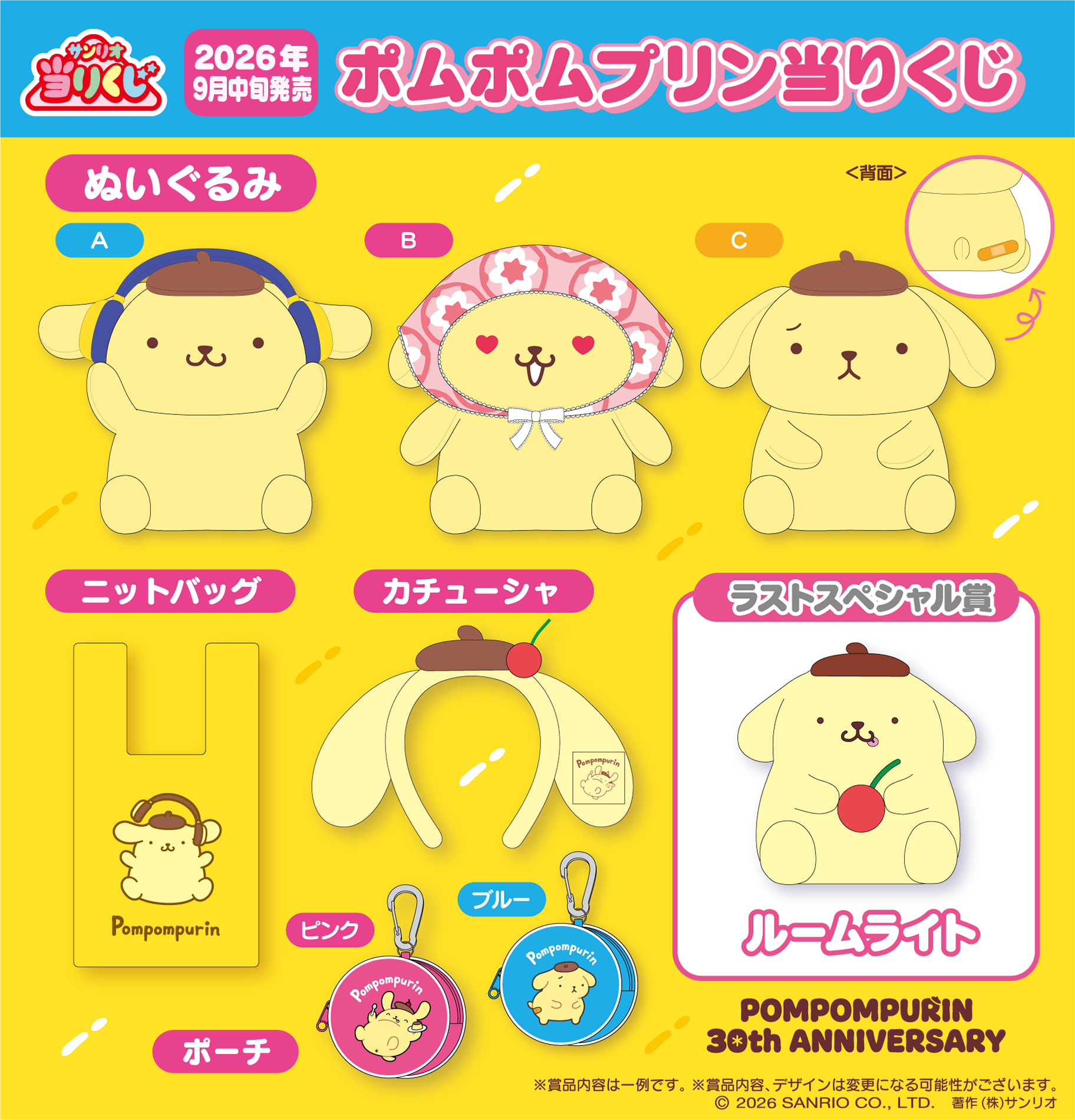 「ポムポムプリン当りくじ」(2026年9月発売)賞品ラインアップ