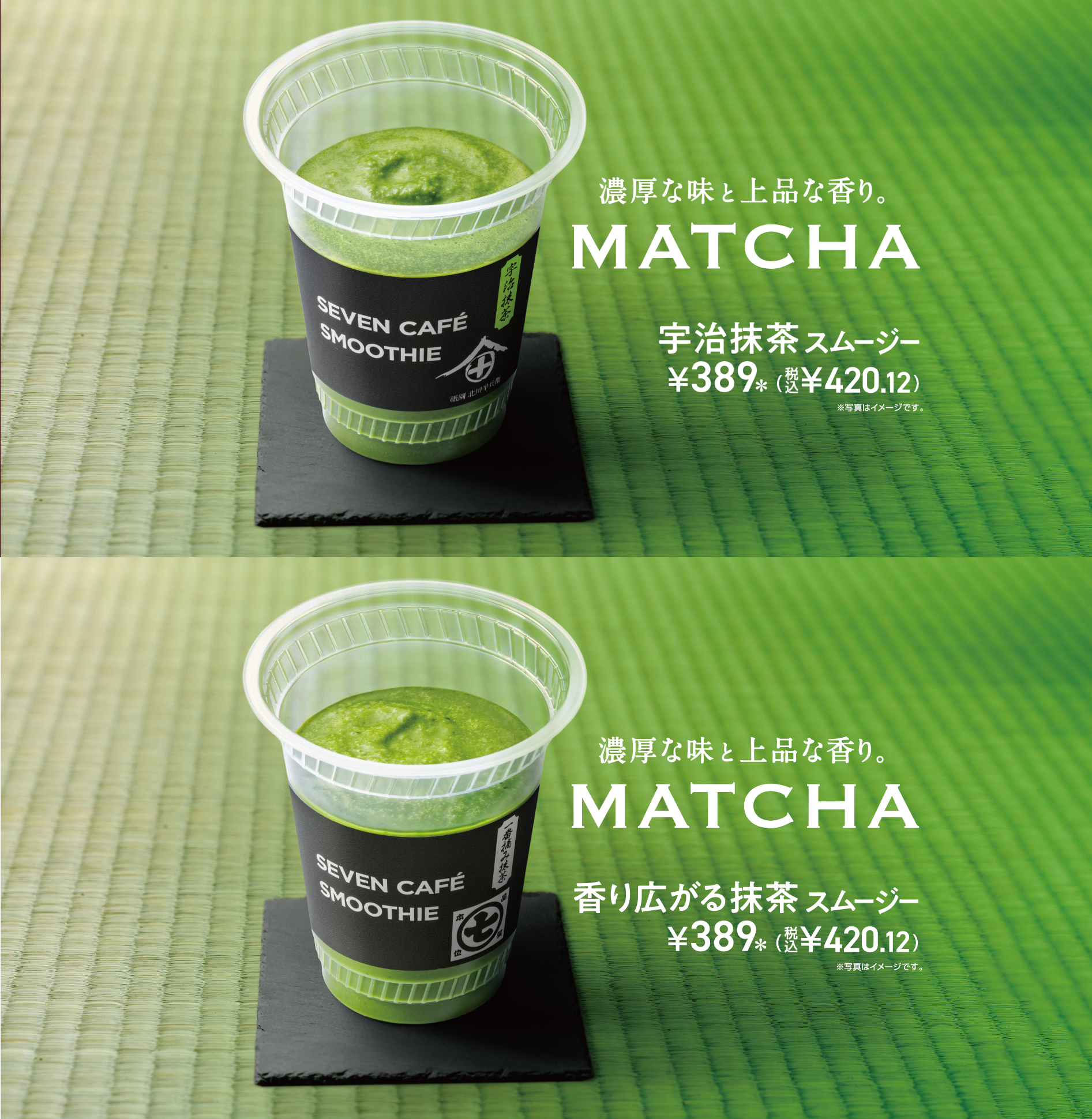 セブンイレブン店内の専用スムージーマシンで作成する商品で、販売エリア別に「宇治抹茶スムージー」と「香り広がる抹茶スムージー」の2種類が展開されます。