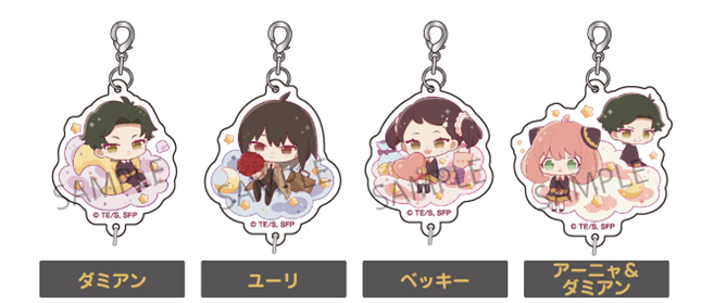 SPY×FAMILY つながる! アクリルチャームvol.2は、ロイドやアーニャ達が雲に乗って浮いているようなデザインを採用したアクリルチャーム。複数のチャームをつなげルことが可能になっています。