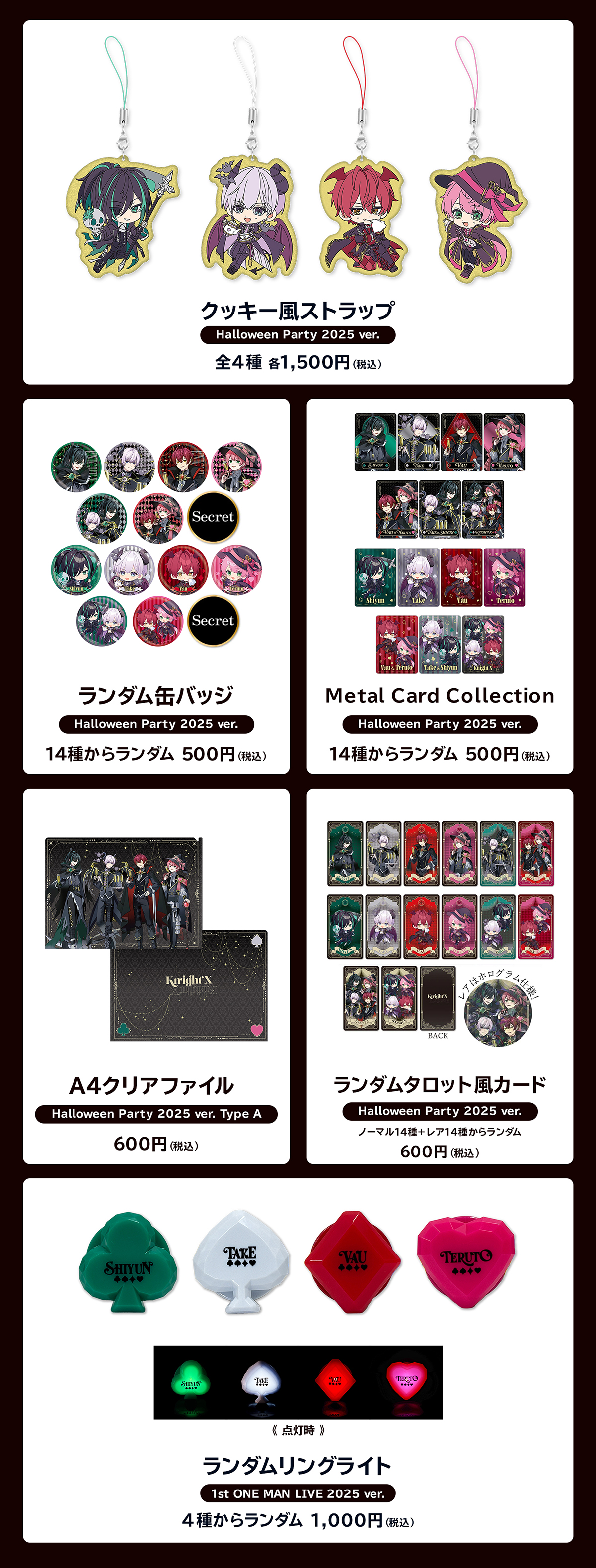 | ・「Metal Card Collection(Halloween Party 2025 ver.)」(全14種/ランダム) | 500円 |