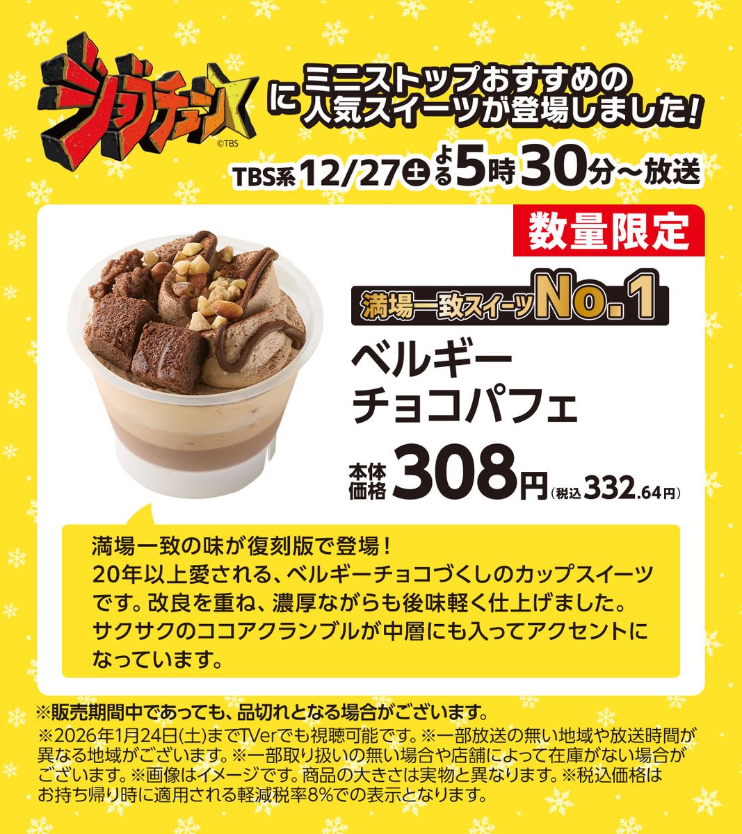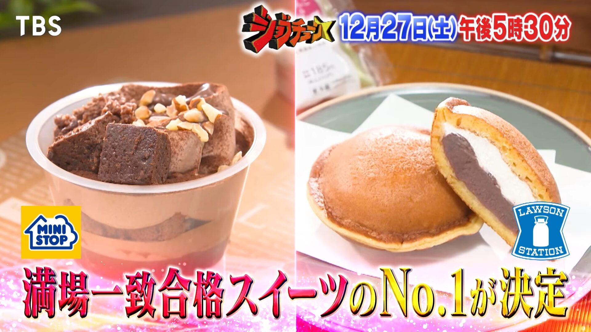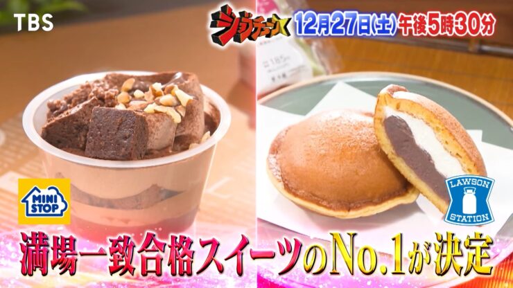 今回のジョブチューン 年末3時間半SPでは、2025年のローソン / ミニストップのスイーツジャッジで満場一致合格を獲得した商品の中からNo.1スイーツを決定するというもの。