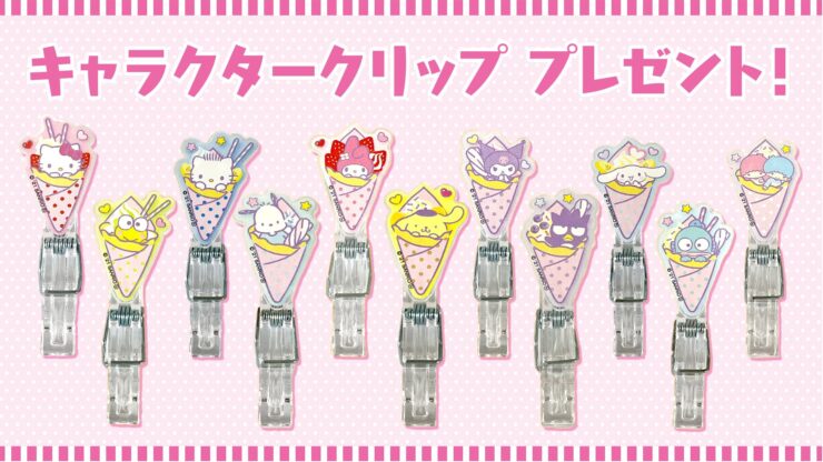 また、サンリオカフェワゴンで商品を税込2,000円購入毎に、「サンリオキャラクター クリップ」を1つもらえるプレアゼントキャンペーンも実施。
