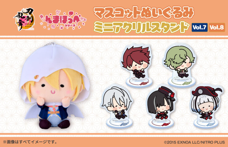刀剣男士が可愛いデフォルメイラストで登場する「んまほっぺ」ぬいぐるみ第3弾とミニアクリルスタンド 第7弾/第8弾が二次予約販売