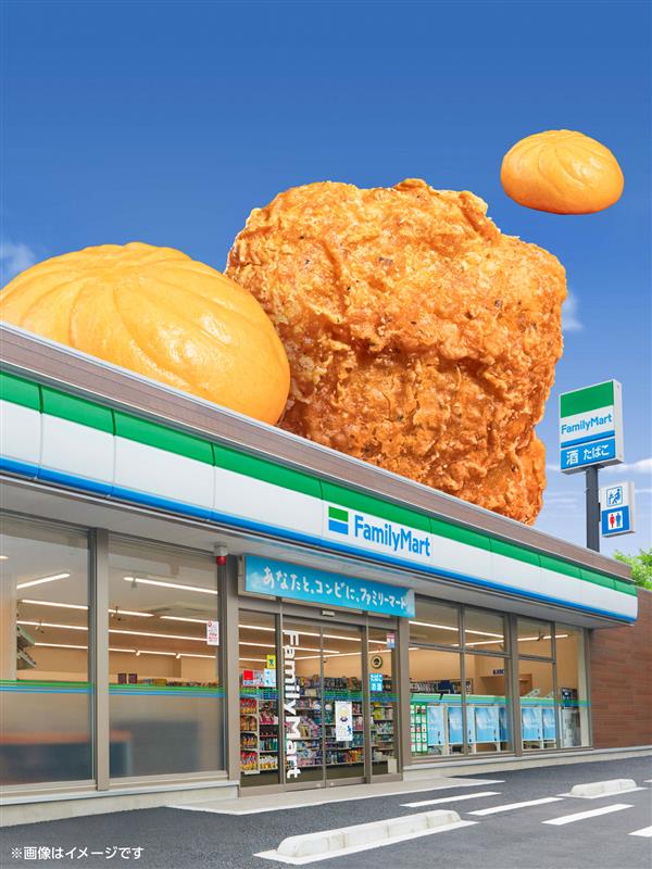 巨大なフライドチキン&中華まんとファミマ店舗が登場、「増」×45個のテキストも