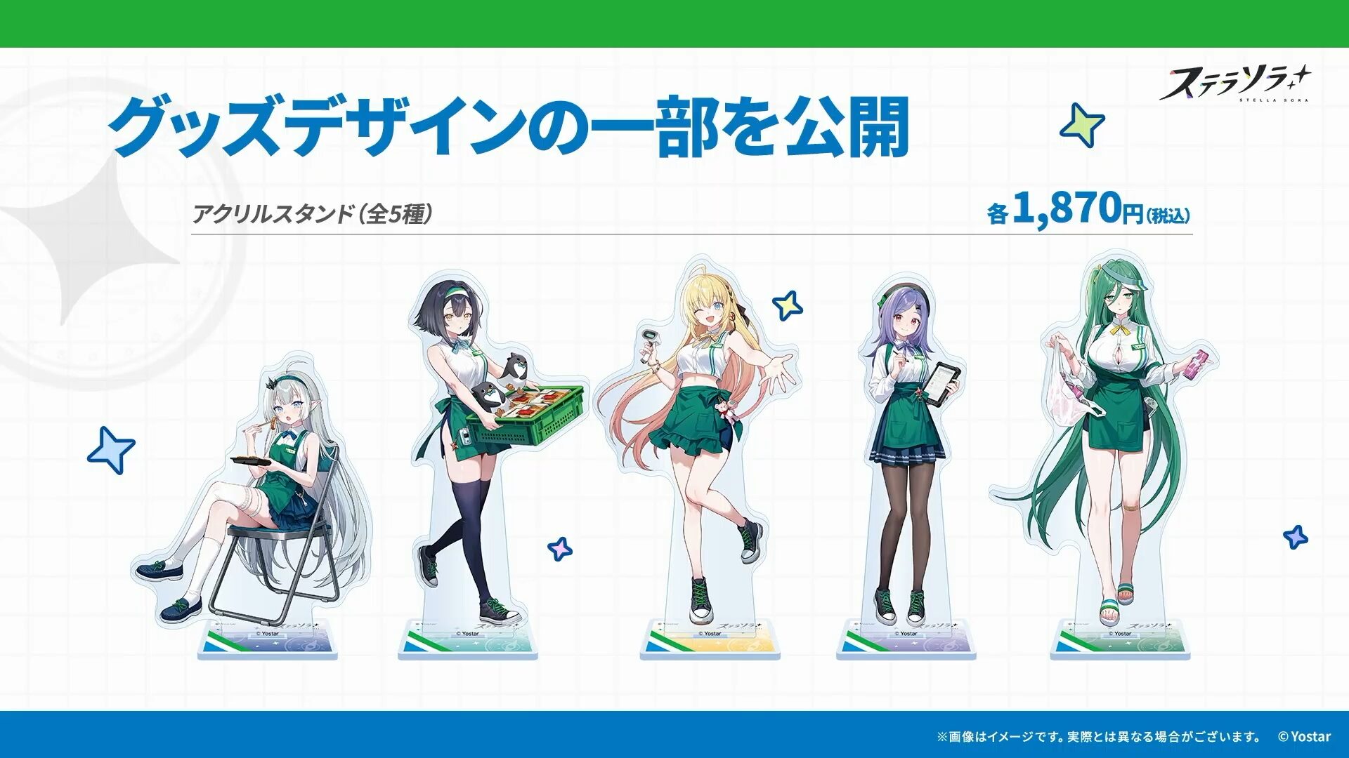 なお、今回のステラソラ×ファミマコラボでは、女魔王たちがファミカラーの「コンビニ店員テーマ」の描き下ろしイラストで登場し、アクリルスタンド(各税込1,870円)やブロマイドなどが販売されるとのこと。