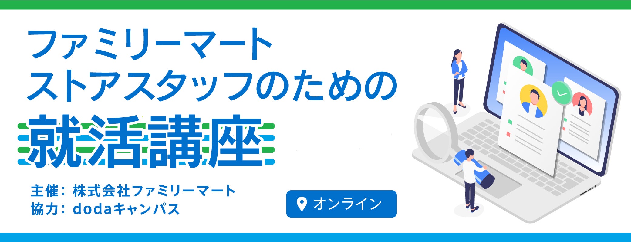 ファミリーマートで働く大学生ストアスタッフ向けに「就活支援オンライン講座」が開催されるそうです。