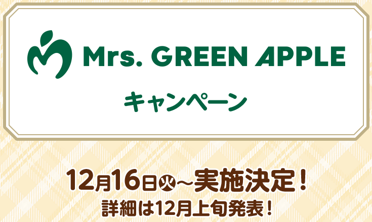 このほか、ローソンではミセスの新作一番くじ「一番くじ Mrs. GREEN APPLE MAGICAL WINTER」が、12月26日(火)に発売が予定されています。