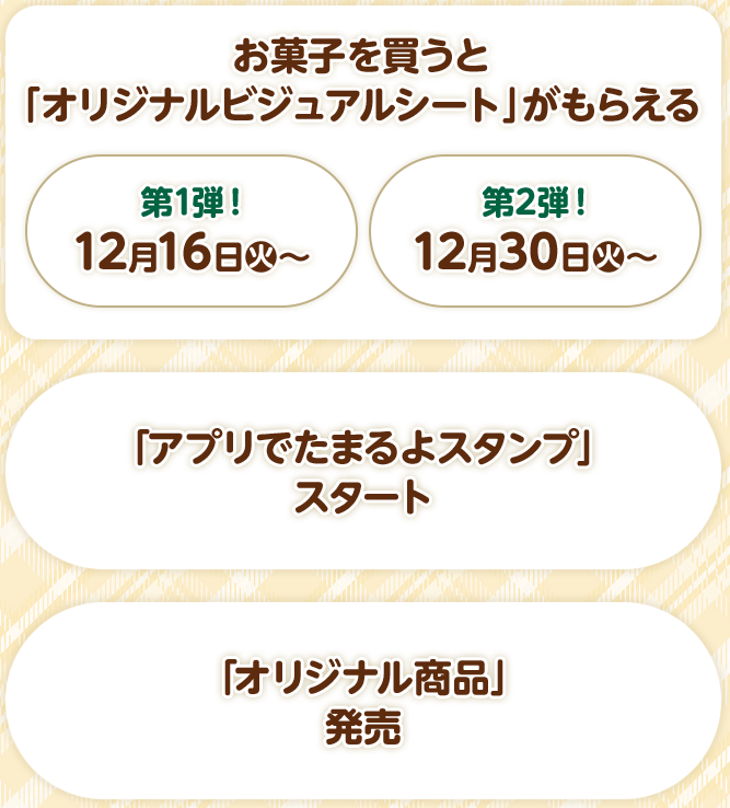 ビジュアルシート配布は第1弾が12月16日(火)から、第2弾が12月30日(火)から実施され、今回のコラボでは2回実施。