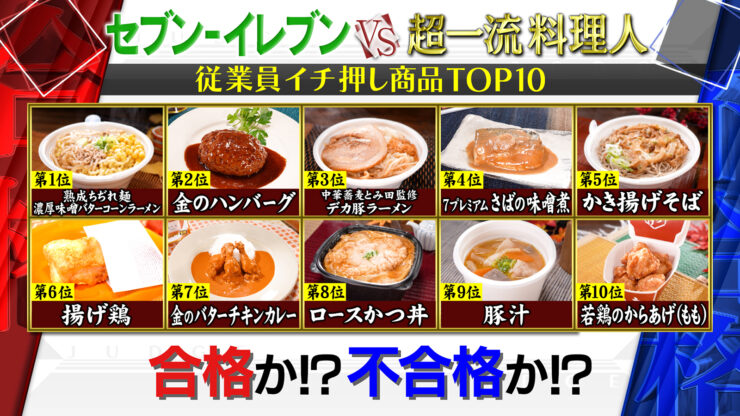 「「超一流料理人がジャッジ! セブン-イレブン開発担当者イチ押し商品TOP10!」」が放送され、合格・不合格の結果が発表されました。