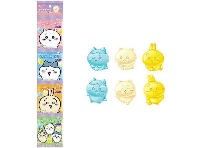 「ちいかわグミ 4連包」「ぷにキャラグミ ちいかわ」は、ちいかわ、ハチワレ、うさぎの形をした可愛いらしいグミ。
