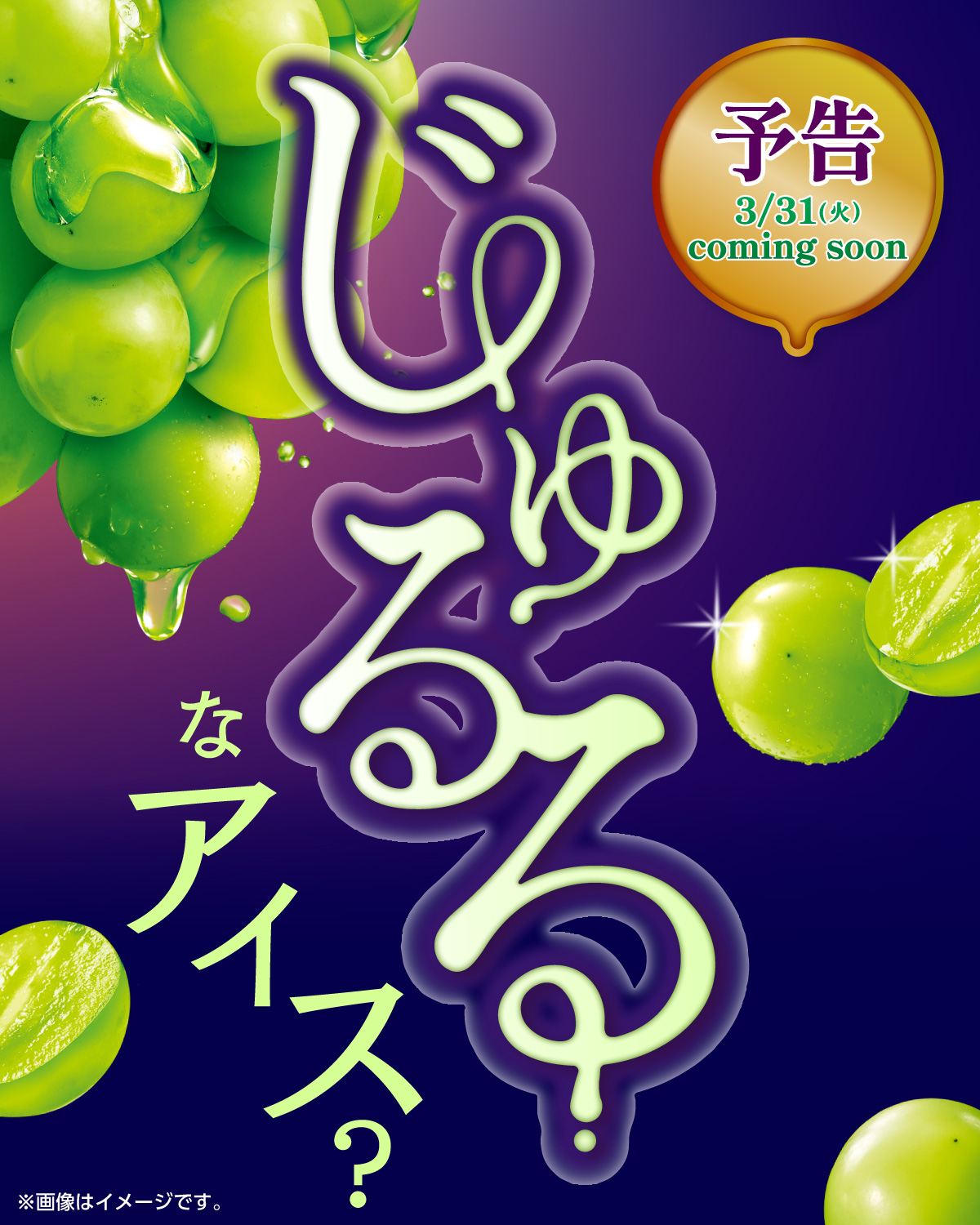 セブンイレブンの投稿では「あのキャンディが、アイスに…?」という投稿とともに、「じゅるるなアイス?」「予告 3/31(火) coming soon」という文言とシャインマスカット&キャンディの画像が公開。