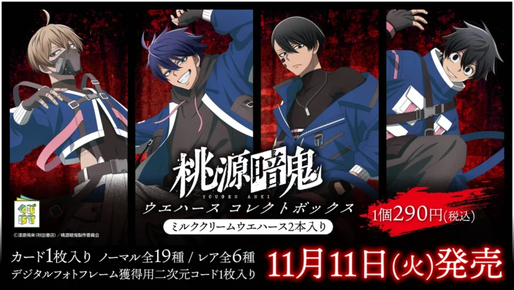 TVアニメ『桃源暗鬼』カード付きウエハースがローソンで2025年11月11日発売、一ノ瀬四季や無陀野無人たちが全25種のカードになって登場!