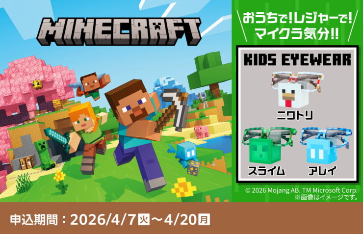 ファミマオンラインで『マインクラフト』(マイクラ) キッズサングラス / メガネスタンドが2026年4月7日から予約販売スタート、「ニワトリ」「スライム」「アレイ」の可愛い3デザイン