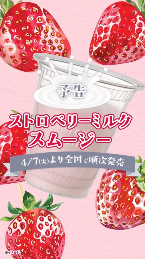 セブンイレブンで「ストロベリーミルクスムージー」が2026年4月7日に発売、いちごの甘酸っぱさとミルクの甘みを楽しめる!
