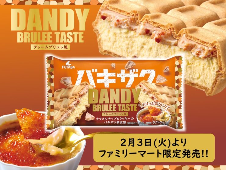 ファミマ限定「ダンディー クレームブリュレ風」が2026年2月3日発売、バキザク食感とクレームブリュレ風のカリッとした食感も楽しめる新食感モナカアイス