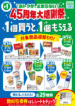 ファミマで「45周年大感謝祭! 1個買うと、1個もらえる」キャンペーンが2026年4月7日スタート、3週にわたって全29種類の対象商品が登場。恒例の『アクエリアス 500ml買うとアクエリアス “950ml”もらえる』も4月21日から実施