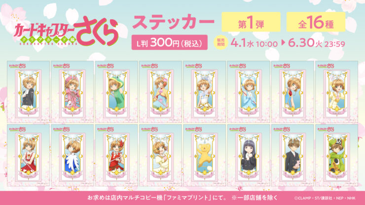 ファミマで『カードキャプターさくら クリアカード編』ステッカー第1弾が2026年4月1日発売、様々なコスチュームの桜や知世 / 小狼 / ケロちゃんが可愛いカード風デザインで登場。全16種から好きな1枚を購入可能