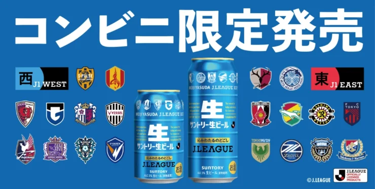 コンビニ限定「サントリー生ビール Jリーグ 限定デザイン缶」が2026年4月21日発売、J1チームのエンブレムがデザイン。サン生×Jリーグコラボグッズをもらえる応募キャンペーンも4月20日からスタート