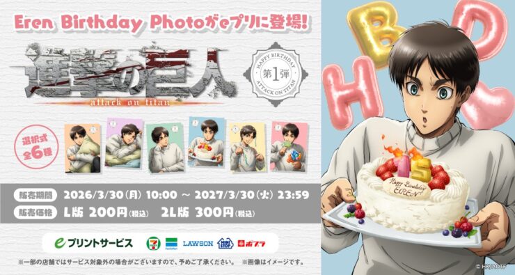 『進撃の巨人』エレン・イェーガーのバーズデーフォトがコンビニで2026年3月30日発売、全6種の中から好きな1枚を選んで購入可能