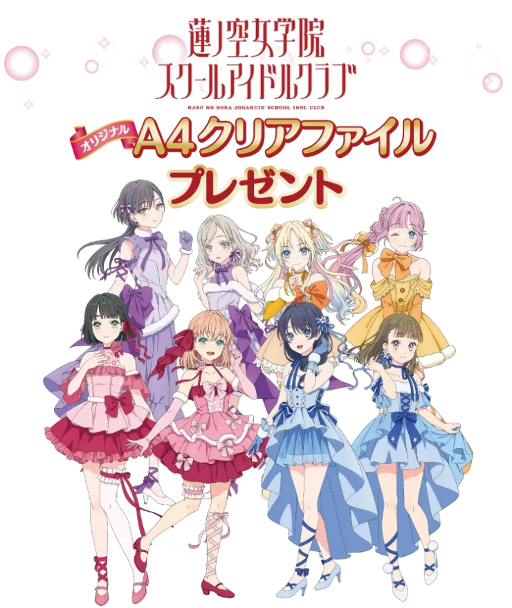 セブンイレブンで『ラブライブ! 蓮ノ空女学院スクールアイドルクラブ』コラボA4クリアファイルもらえる! コラボキャンペーンが2025年12月18日スタート。日野下花帆たち8名がドレス姿で登場