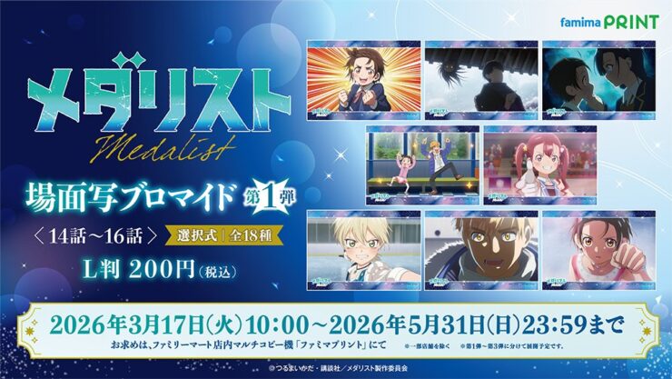 ファミマで『メダリスト』第2期場面写ブロマイドが2026年3月17日発売、第1弾として第14話 ~第16話の全18種が登場。好きなシーンを選んで購入可能