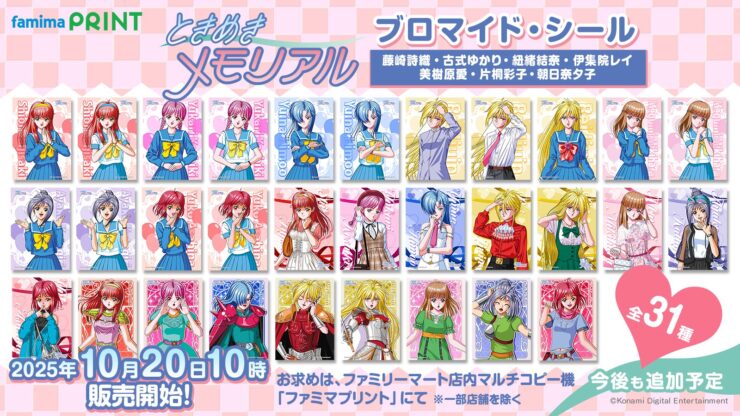 『ときめきメモリアル』(ときメモ)のバースデーイラスト ブロマイド / シールがファミマで2025年10月20日発売、藤崎詩織たちが描き下ろしイラストで登場。全31種の中から好きな1枚を選んで購入可能