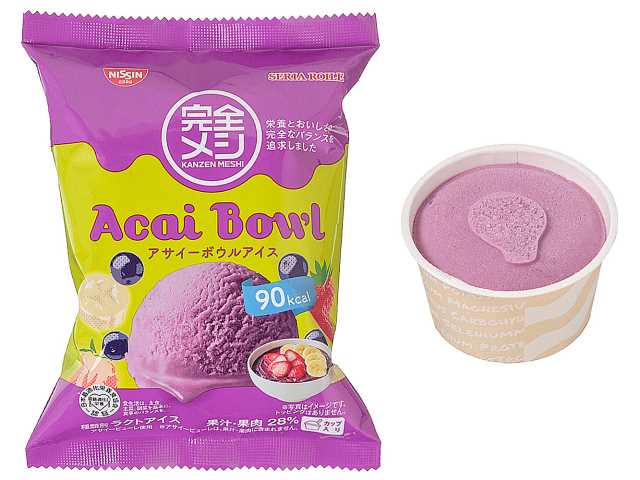 セブンイレブンで「日清 完全メシ アサイーボウルアイス」が2026年4月21日発売、地域限定販売。完全メシ ブランドのカップアイスが店頭販売