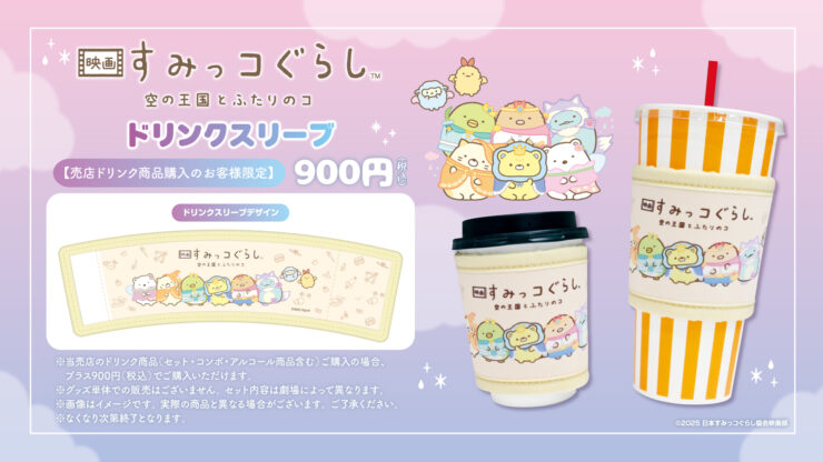 映画『すみっコぐらし 空の王国とふたりのコ』ドリンクスリーブが一部映画館で2025年10月31日発売、ユナイテッドシネマの一部上映劇場にて取り扱い。売店ドリンク商品などとセットで購入可能