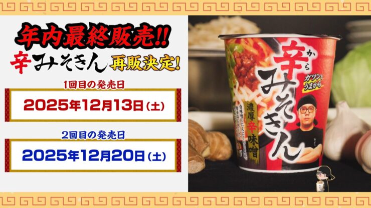 HIKAKIN(ヒカキン)さんの「辛みそきん」が発売決定、全国のセブンイレブンで2025年10月25日/31日に店頭販売。みそきんが“うまから”な味わいになって登場! 「新みそきん」も10月25日に5度目、31日に6度目の再販売