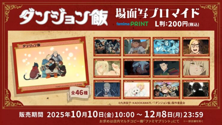 TVアニメ『ダンジョン飯』第1期の場面写ブロマイドがファミマで2025年10月10日発売、全46種の中から好きなシーンを選んで購入可能