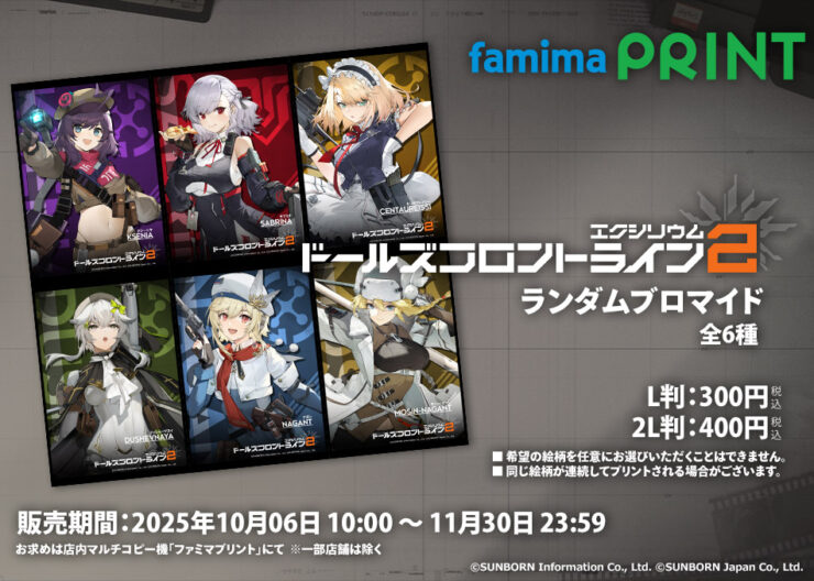 ファミマで『ドルフロ2』ランダムブロマイド第3弾が2025年10月6日発売、クシーニヤ / サブリナ / センタウレイシー / ドゥシェーヴヌイ / ナガン / モシン・ナガンの6名が登場