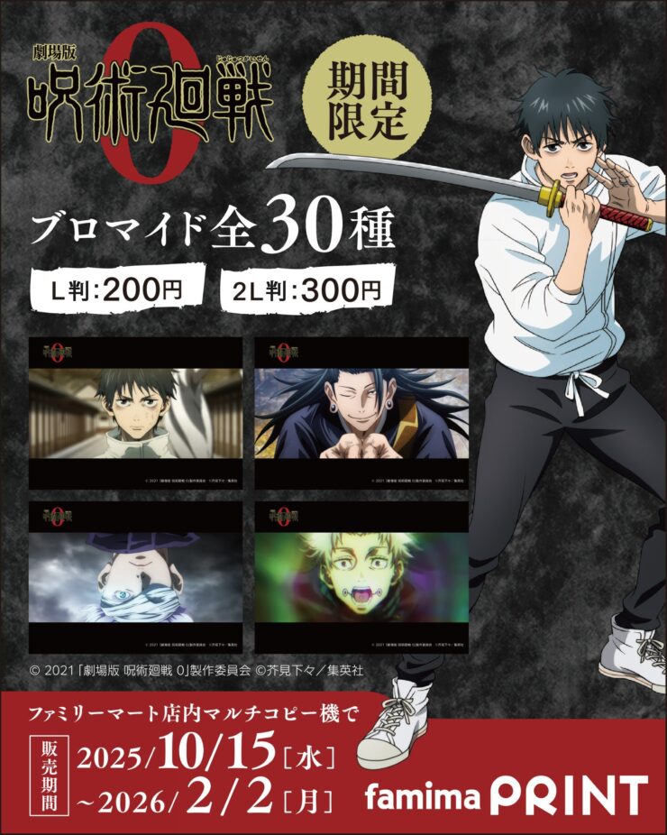 『劇場版 呪術廻戦 0』場面写ブロマイドがファミマで復刻販売、全30種の名場面が2025年10月15日から再登場。好きなシーンを選んで購入可能