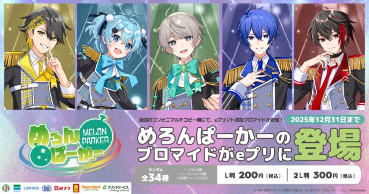 新商品情報 NEW 2025年12月1日 歌い手グループ『めろんぱーかー』めろぱかeプリントブロマイド 2025年12月版がコンビニで2025年12月1日発売、「王道アイドル衣装」のブロマイドなど全34種が登場。シークレットは実写ブロマイド!
