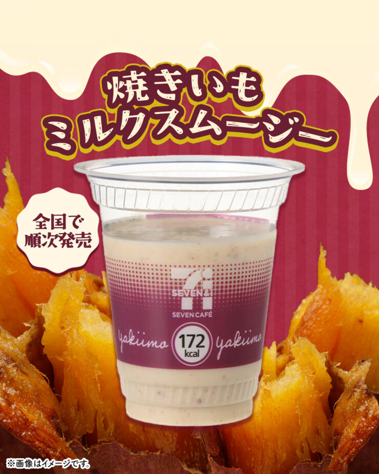 セブンイレブンで「焼きいもミルクスムージー」が全国展開、2025年11月11日から順次登場。まるで焼き芋を飲んでいるようなとろける食感の焼き芋スムージー